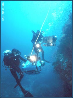 Bob Cranston, Mark Thurlow, and I descend to 325 feet